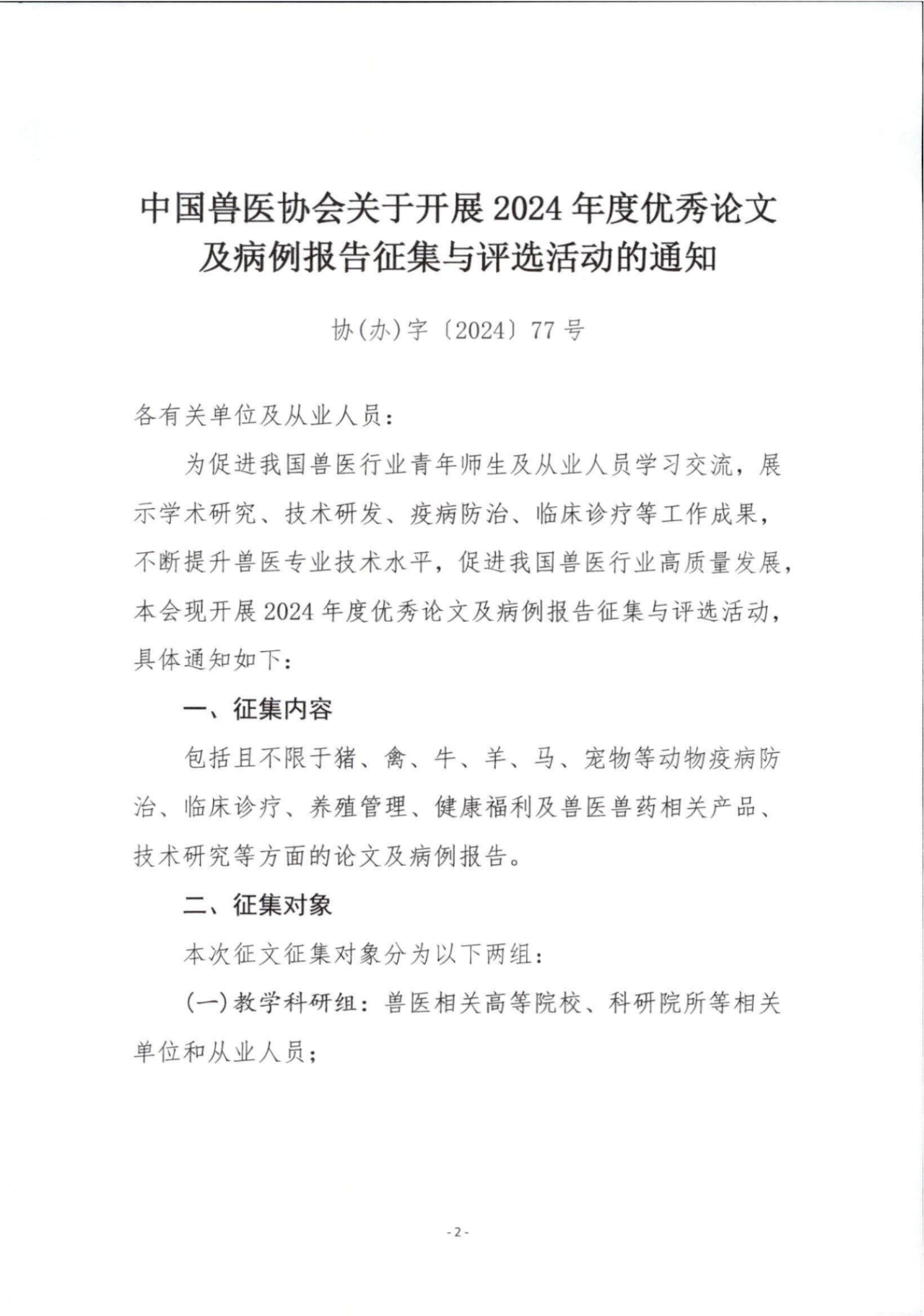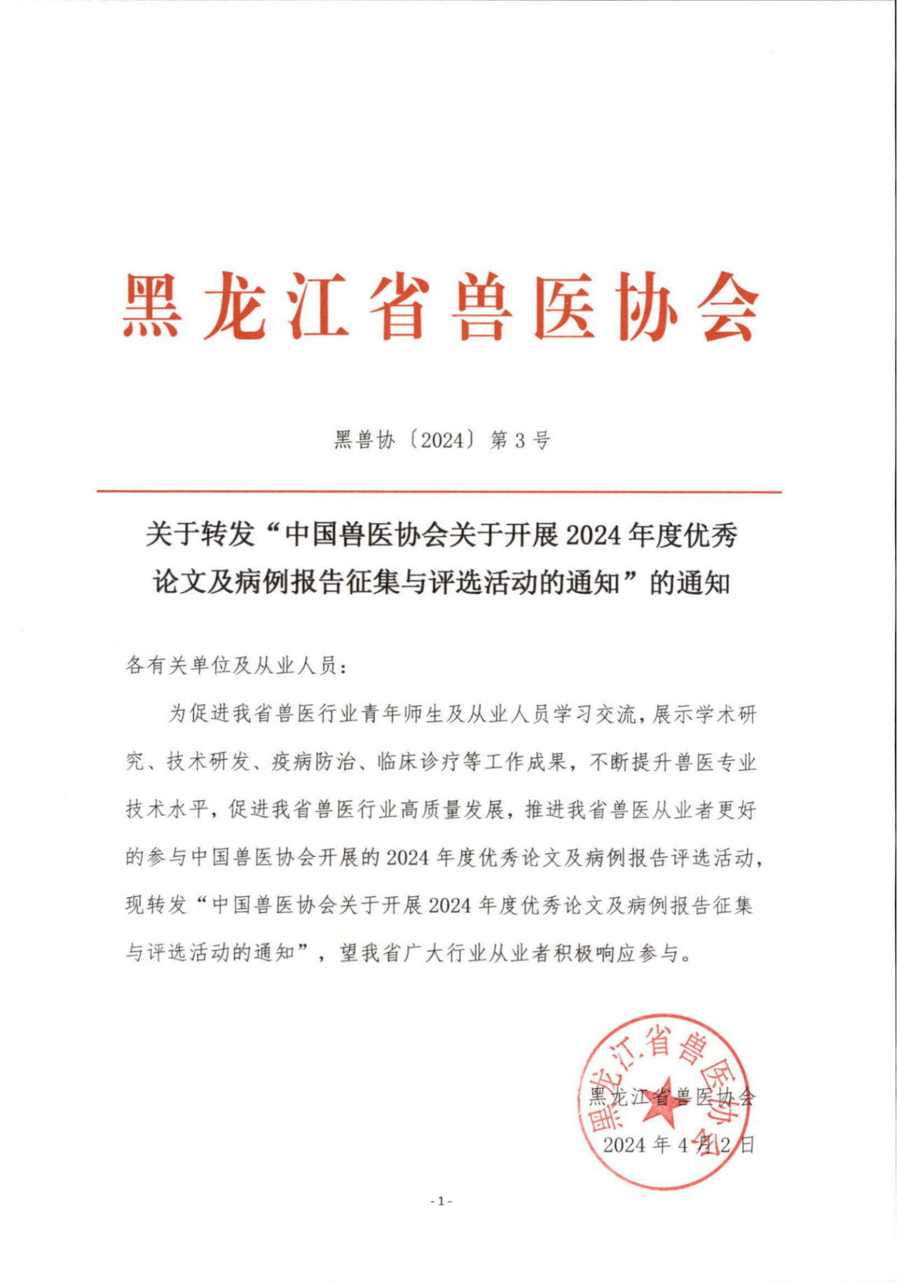 黑龙江省兽医协会关于转发“中国兽医协会关于开展2024年度优秀论文及病例报告征集与评选活动的通知”的通知